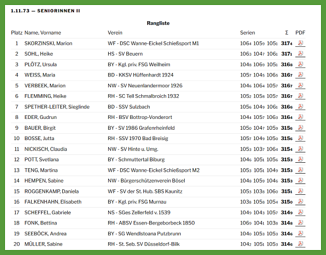 Dortmund bei den diesjährigen Deutschen Meisterschaften in der Seniorinnenklasse II. |