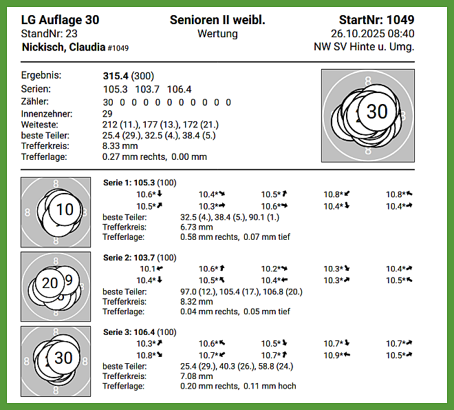 Von 134 Teilnehmerinnen erreichte sie mit hervorragenden 315,4